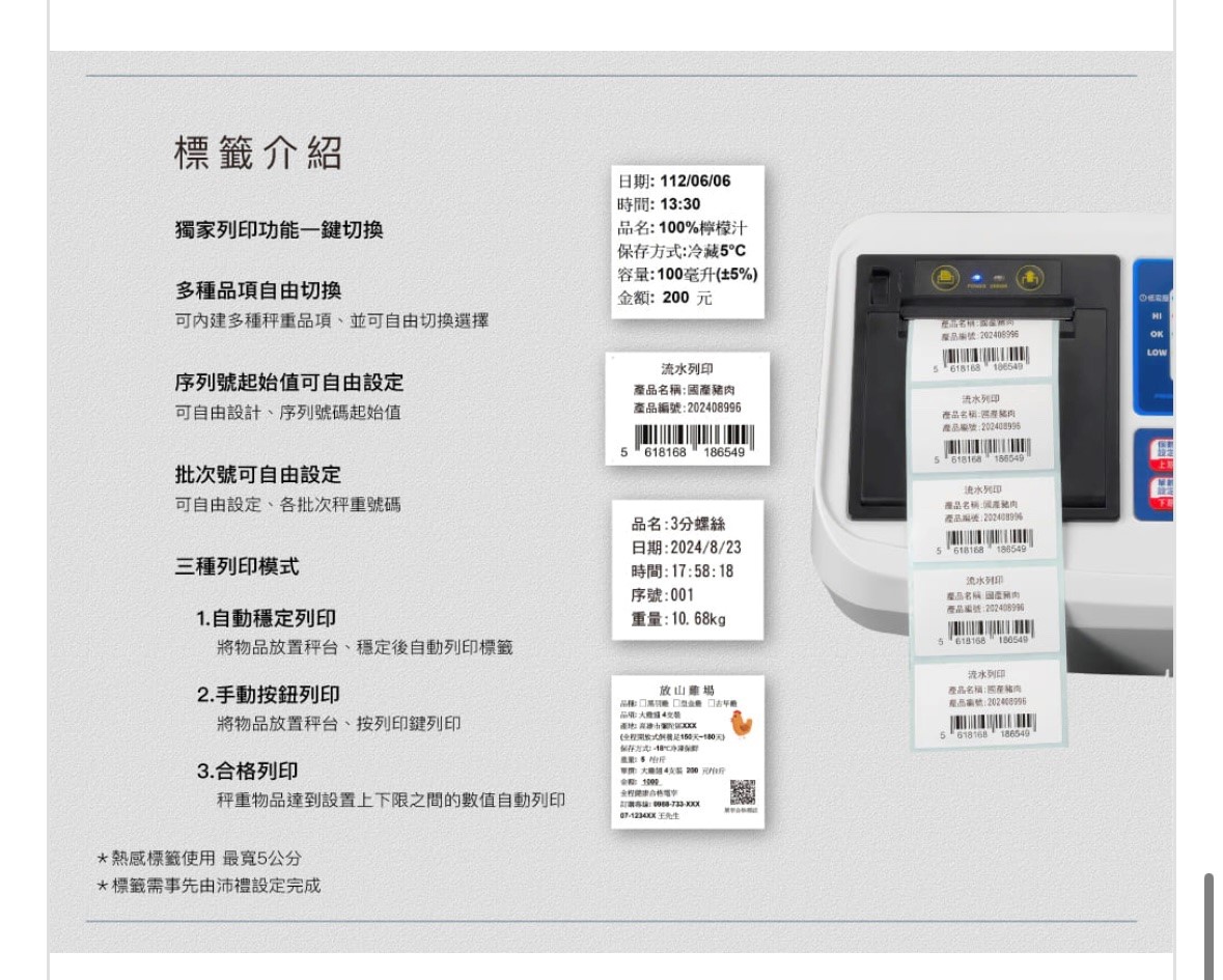 2.一體式:內置標籤機、標籤格式可自由編輯,秤重、標籤列印一次完成